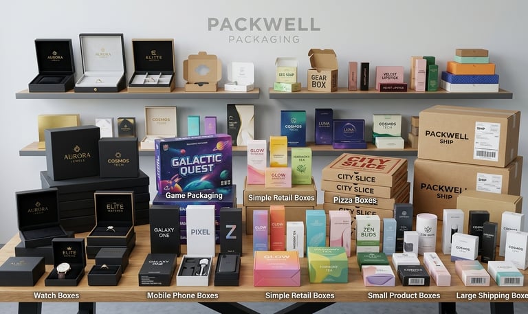 We produce all kinds of custom packaging boxes, including fancy, luxury, jewellery, watch, mobile, game, and pizza boxes. Available in small and large sizes, our boxes are designed to protect and present your products professionally.